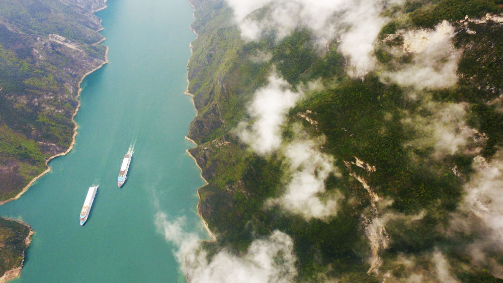 重慶奉節瞿塘峽一帶景色(無人機照片,2019年3月28日攝)。新華社記者 王全超 攝