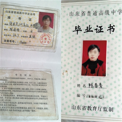 陳春秀回憶,2004年6月參加完高考后,報了三個志愿,前兩個是上海的學校,最后一個是山東理工大學。她給記者提供的一份2004年山東省普通高等學校錄取新生名冊顯示,陳春秀當年的高考成績546分,離本科線差3分,被填報的第三志愿——山東理工大學國際經濟與貿易專業錄取。