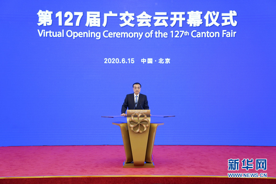 6月15日,中共中央政治局常委、國(guó)務(wù)院總理李克強(qiáng)在北京出席第127屆廣交會(huì)“云開(kāi)幕”儀式。 新華社記者 張領(lǐng) 攝