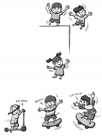 “可我說了沒用,這幫孩子天天交流,平衡車、滑板,回家就要。”武先生坦言,孩子們攀比的背后,是“能玩的太少”的現狀。尤其是今年開春后,不少家長都給孩子添置了自行車等設備。“人家給買你不買,孩子心里不舒服。”有時拗不過孩子,自己只能就范。