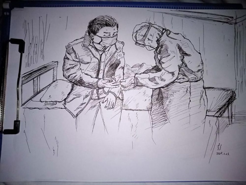 “護士們一忙就是6個小時以上,我希望用素描記錄這里的每一個溫暖瞬間。”作為一名美術藝考生,彭昕燁用自己最擅長的方式——素描,將醫(yī)院內(nèi)那些溫暖的瞬間記錄下來。