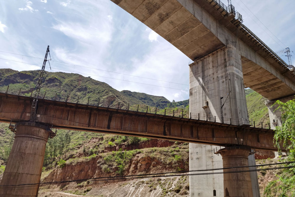 這是采用“轉體施工法”建設的大樹村龍川江三線大橋(上)一景,該橋單體轉體重量7350噸,總重量14700噸(6月23日攝)。新華社記者 王長山 攝