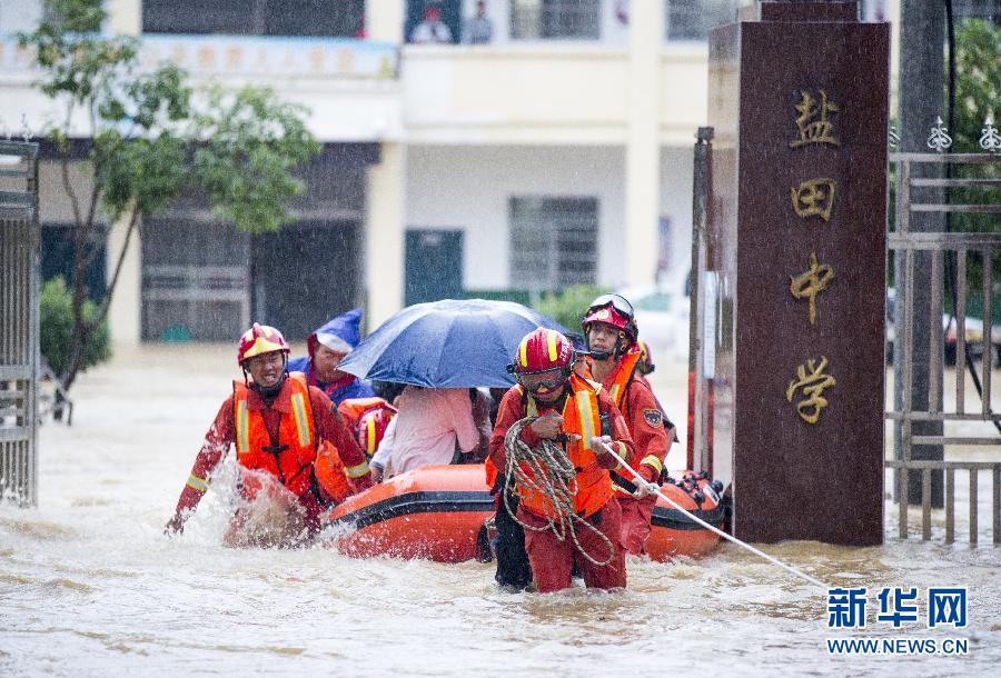 8日6時20分,受持續強降雨影響,九江都昌縣鹽田中學水深達1.2米,校內500多名學生被洪水圍困。消防指戰員和民兵、鄉村干部等組成救援隊,經過近5個小時的救援,被困學生全部安全轉移。