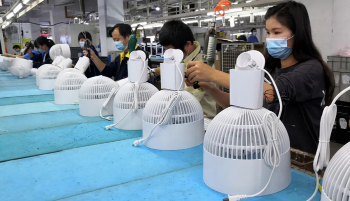 3月2日,深圳市一家企業(yè)復(fù)工后,工人在生產(chǎn)車間加工電風(fēng)扇零部件 周科 攝