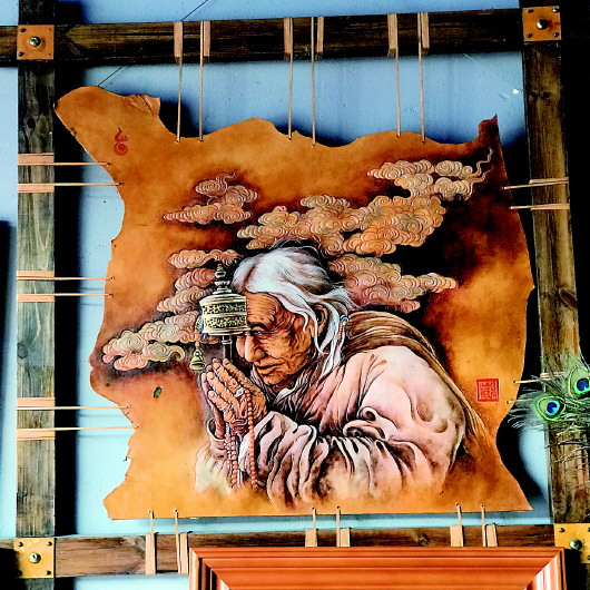 自己不事皮雕,卻對皮雕技藝別饒一種念想的人,是心思綿密且溫潤的。故而,何春龍說師傅嘎瓦來了,我當(dāng)即愿意過去見面,如果在采寫皮雕傳人之后,對一個(gè)皮雕博物館有即便間接促成之功,也會(huì)有望外之喜啊!