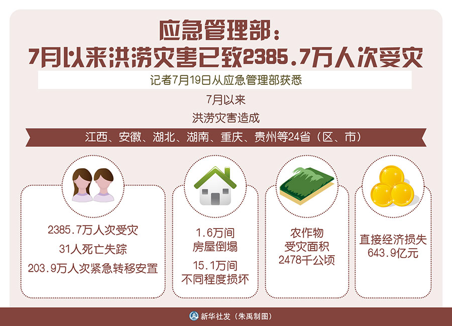 應急管理部:7月以來洪澇災害已致2385.7萬人次受災-新華網
