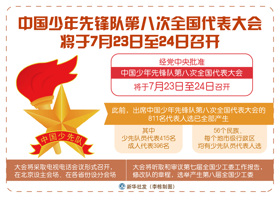 中國少年先鋒隊第八次全國代表大會將于7月23日至24日召開-新華網