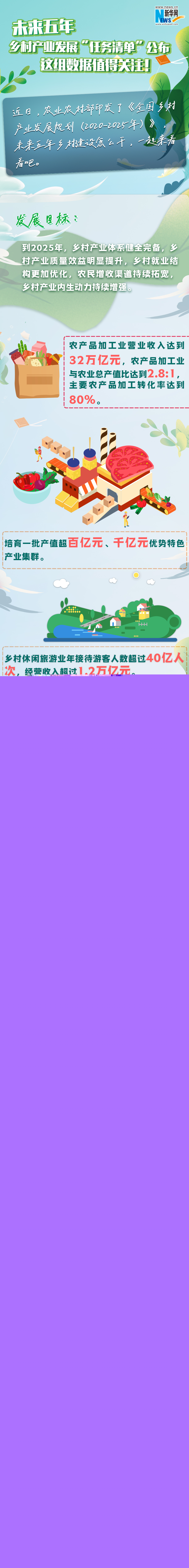 未來五年鄉村產業發展“任務清單”公布 這組數據值得關注!