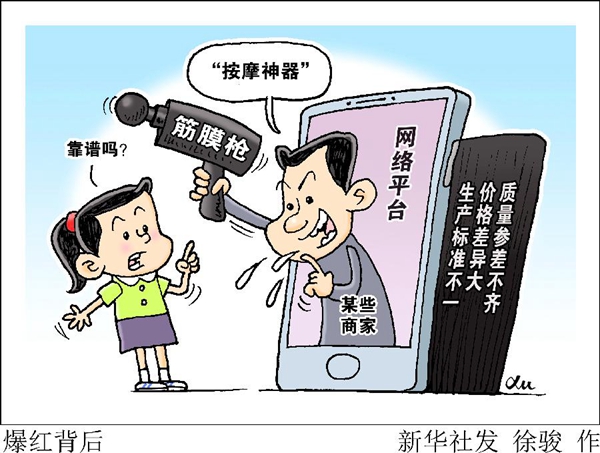 筋膜槍似乎“一夜”出圈成為網(wǎng)紅產(chǎn)品。今年“6.18”網(wǎng)絡(luò)購物平臺(tái)活動(dòng)首日,某品牌筋膜槍開售1小時(shí)即突破百萬元銷售額。在某直播平臺(tái),一位網(wǎng)絡(luò)達(dá)人首次帶貨就售出5000多件,累計(jì)銷售額近500萬元。還有明星在視頻平臺(tái)推廣,1萬余件產(chǎn)品幾乎“秒搶”。
