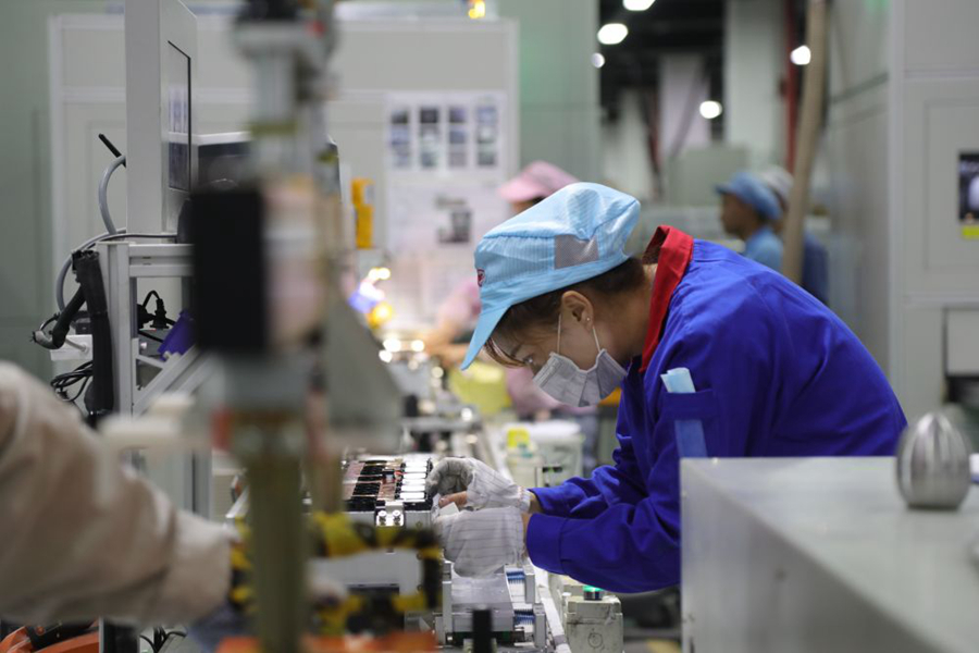 7月28日,在西寧市南川工業園區的青海比亞迪動力電池工廠內,工作人員在生產車間作業。新華社記者 趙玉和 攝