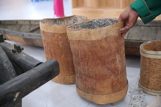 那春林的奶奶年輕時制作的樺樹皮筒。新華網焦鵬攝