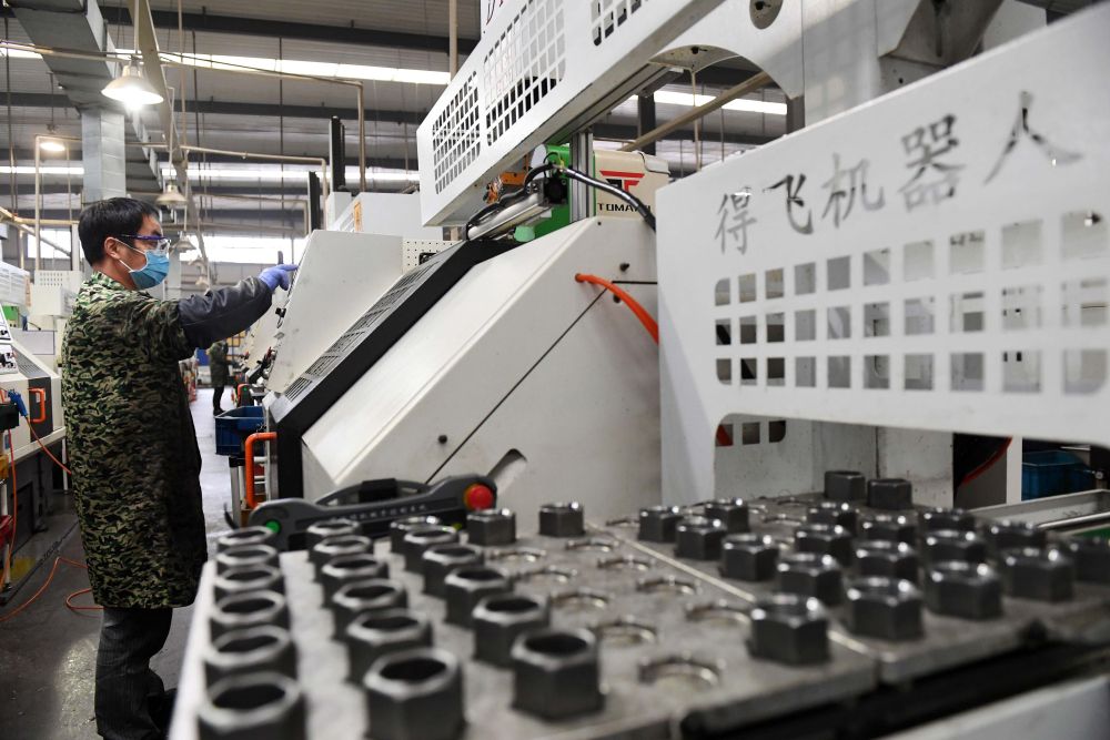 3月5日,在江西省宜春市一家企業(yè)車(chē)間內(nèi),工人在半自動(dòng)化生產(chǎn)線(xiàn)上工作。各地工業(yè)企業(yè)在做好疫情防控的同時(shí)積極復(fù)工復(fù)產(chǎn)。新華社發(fā)(周亮 攝)