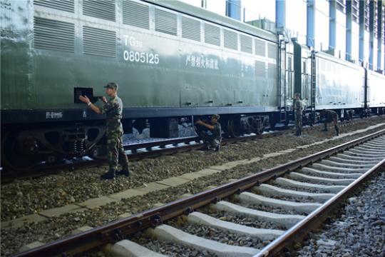 軍列到站,戰士們會第一時間下車檢查列車狀態。