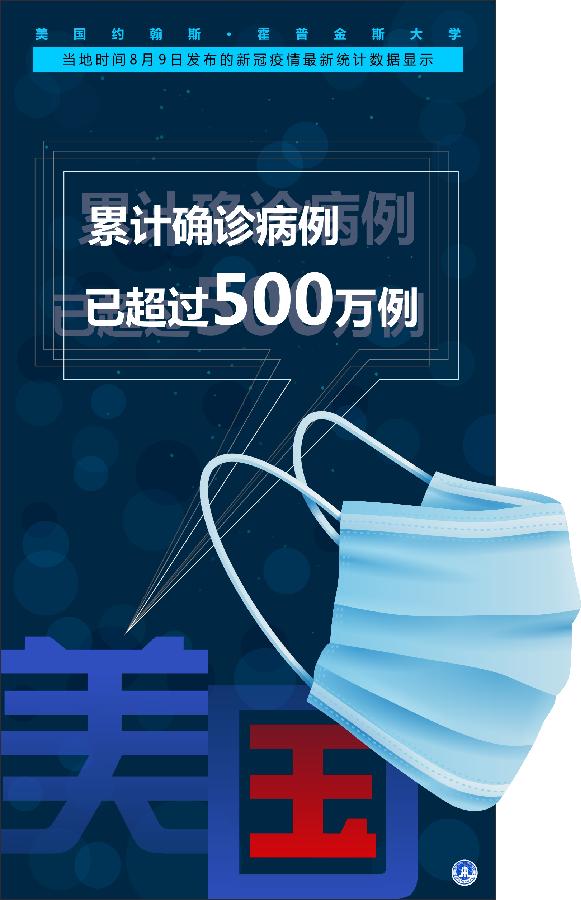 新華社紐約8月9日電? 美國約翰斯·霍普金斯大學9日發布的新冠疫情最新統計數據顯示,美國累計確診病例已超過500萬例。