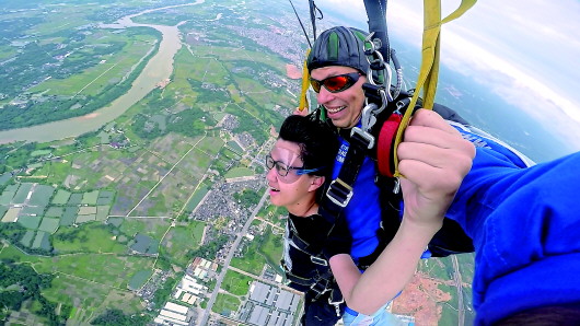 更瘋狂的是去年6月,方堅澤嘗試了一次跳傘。那天教練帶著他從4千米的高空躍下,當毫發(fā)無損地回到地面,他對人生又有了更多的感悟:挫折對人生而言微不足道,奮斗和努力會讓人活得出彩。