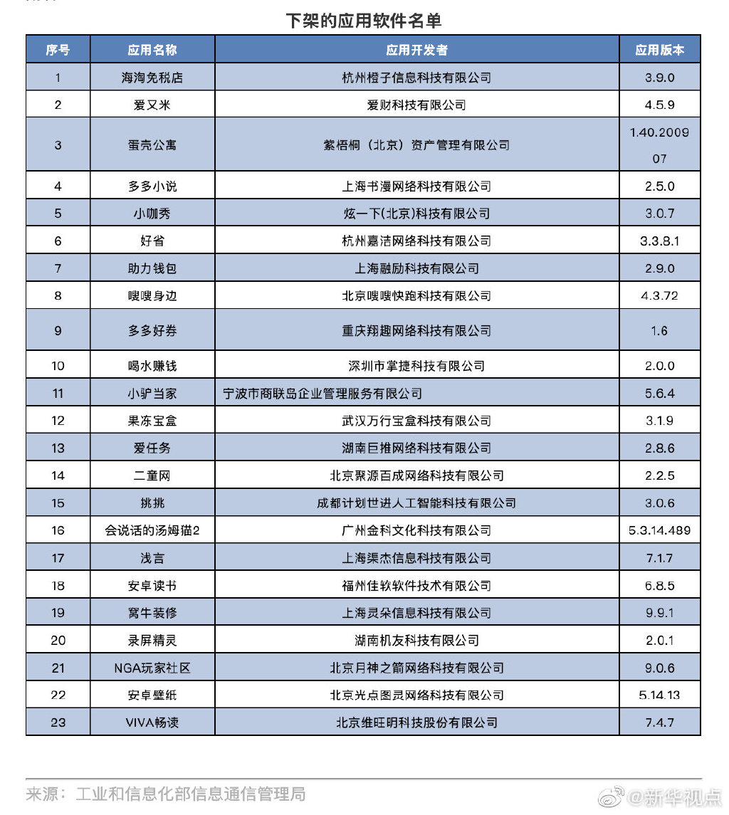 工信部14日消息,工信部此前向社會通報了101家存在侵害用戶權(quán)益行為APP企業(yè)的名單。截至目前,經(jīng)第三方檢測機構(gòu)核查復(fù)檢,尚有海淘免稅店、愛又米等23款A(yù)PP未按要求完成整改。根據(jù)相關(guān)規(guī)定,工信部組織對這些APP進(jìn)行下架。(記者 張辛欣) ????