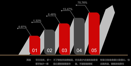 報(bào)告進(jìn)一步顯示,即使知曉心肺復(fù)蘇和AED的相關(guān)知識,大學(xué)生在緊急情況下救助他人時(shí)仍存在一定顧慮,其主要原因是“對自己的急救能力沒信心,怕出現(xiàn)失誤,需要承擔(dān)責(zé)任”。課題組認(rèn)為,除相關(guān)急救知識培訓(xùn)宣傳不到位、學(xué)生急救能力不足,現(xiàn)場急救相關(guān)法律制度不健全、責(zé)任主體劃分不清也是導(dǎo)致以上顧慮的重要因素。