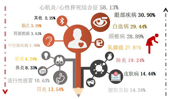 大學(xué)生最擔(dān)心罹患的疾病類型分布(%)。廉思課題組供圖