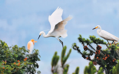 湖南省邵陽市洞口縣羅溪瑤族鄉鐵山村,成群的鷺鳥在飛舞歡歌。滕治中攝(人民視覺)