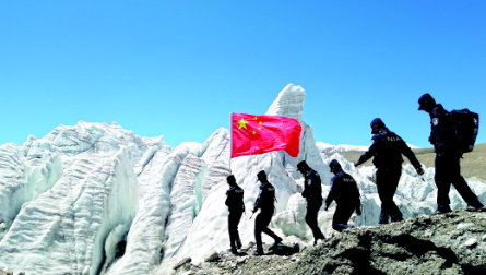 “你在高山之巔,背靠著信念,自己也成了靠山。你在世界之巔,與冰雪為伴,時空也有了溫暖。愛國使命,融進你的血脈,刻成了信念,也托起了藍藍的天。”(劉小草)