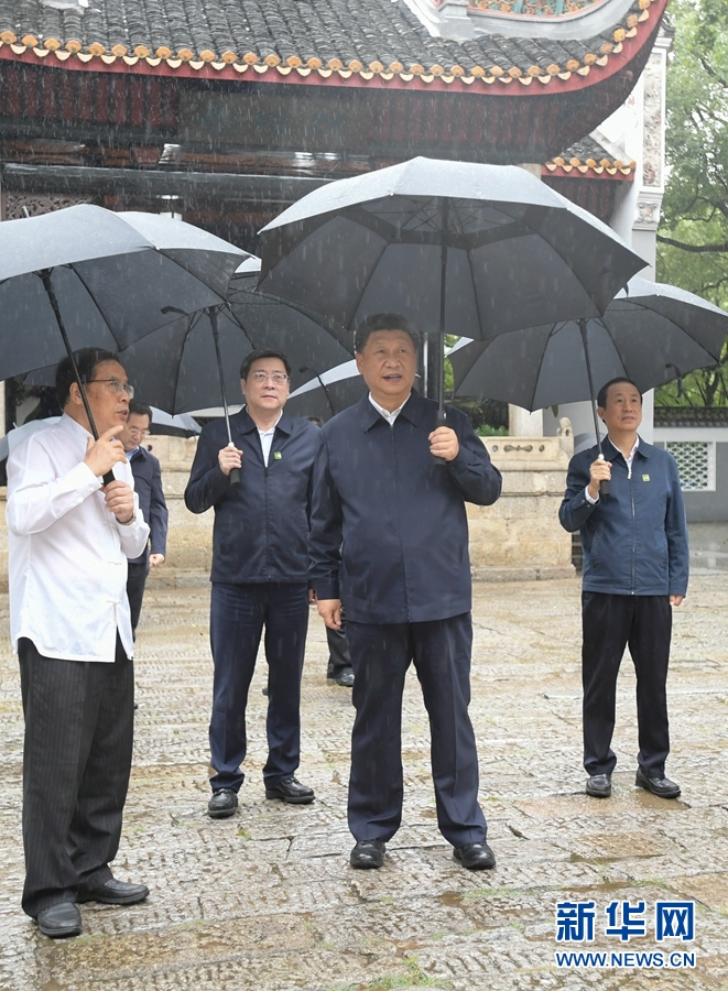16日下午,習(xí)近平首先來到郴州市汝城縣文明瑤族鄉(xiāng)沙洲瑤族村考察調(diào)研。1934年,紅軍長征路過這里,留下了“半條被子”的感人故事。習(xí)近平走進(jìn)“半條被子的溫暖”專題陳列館,了解當(dāng)?shù)丶訌?qiáng)基層黨的建設(shè)、開展紅色旅游和紅色教育情況。習(xí)近平指出,“半條被子”的故事充分體現(xiàn)了中國共產(chǎn)黨的人民情懷和為民本質(zhì)。長征途中,毛澤東同志指出,中國工人、農(nóng)民、兵士以及一切勞苦民眾的出路在共產(chǎn)黨主張的蘇維埃紅軍,我們一定會勝利。今天,我們更要堅(jiān)定道路自信,兌現(xiàn)黨的誓言和諾言,同人民群眾風(fēng)雨同舟、血肉相連、命運(yùn)與共,繼續(xù)走好新時(shí)代的長征路。