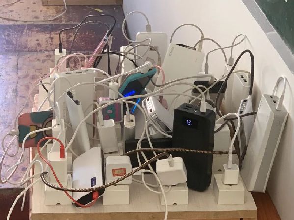 每間教室的講臺旁邊都放著一排插線板,上面插滿了充電寶。據(jù)學(xué)生介紹,學(xué)校封禁了宿舍內(nèi)的插電孔,他們只能將充電寶在教室充滿電后帶回宿舍用?!坝袝r候教室里充電的地方滿了,要么排隊,要么去超市花錢充?!庇捎谒奚釠]插電孔、沒網(wǎng),這里的大學(xué)生幾乎沒人用電腦。小許說,學(xué)校說宿舍不能充電是為了防火安全,但是如此管理未免太過“簡單粗暴”。