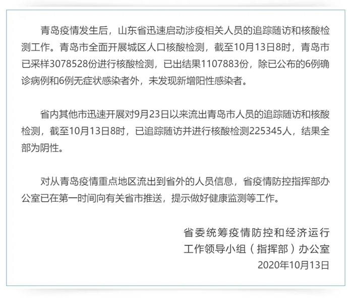 山東省迅速開展青島疫情相關人員追蹤隨訪和核酸檢測工作-新華網