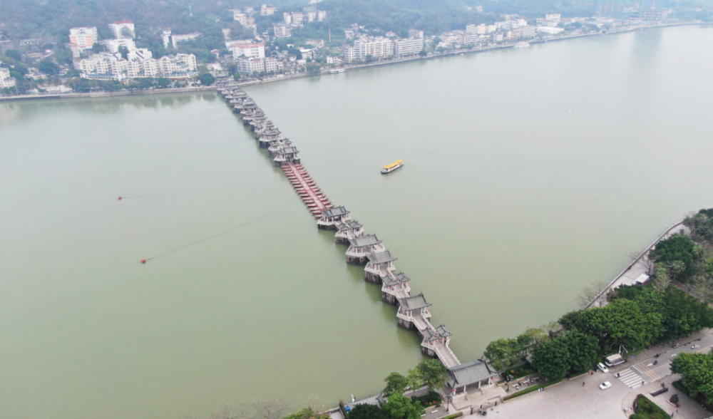 廣東省潮州市韓江上的廣濟橋,廣濟橋是中國乃至世界上最早的啟閉式橋梁。無人機照片 新華社記者 王瑞平 攝