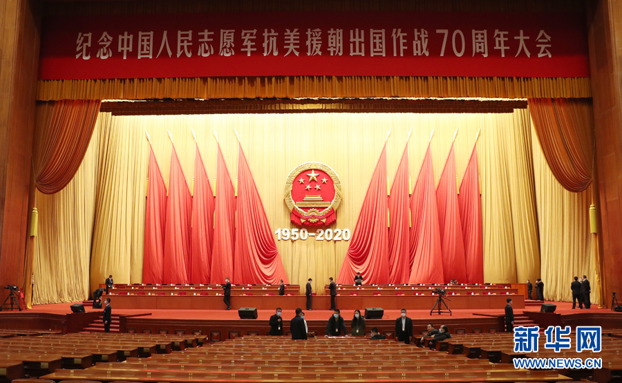 ??? 10月23日,紀念中國人民志愿軍抗美援朝出國作戰70周年大會在北京人民大會堂隆重舉行。圖為人民大會堂大禮堂。(新華網 翟子赫 攝)