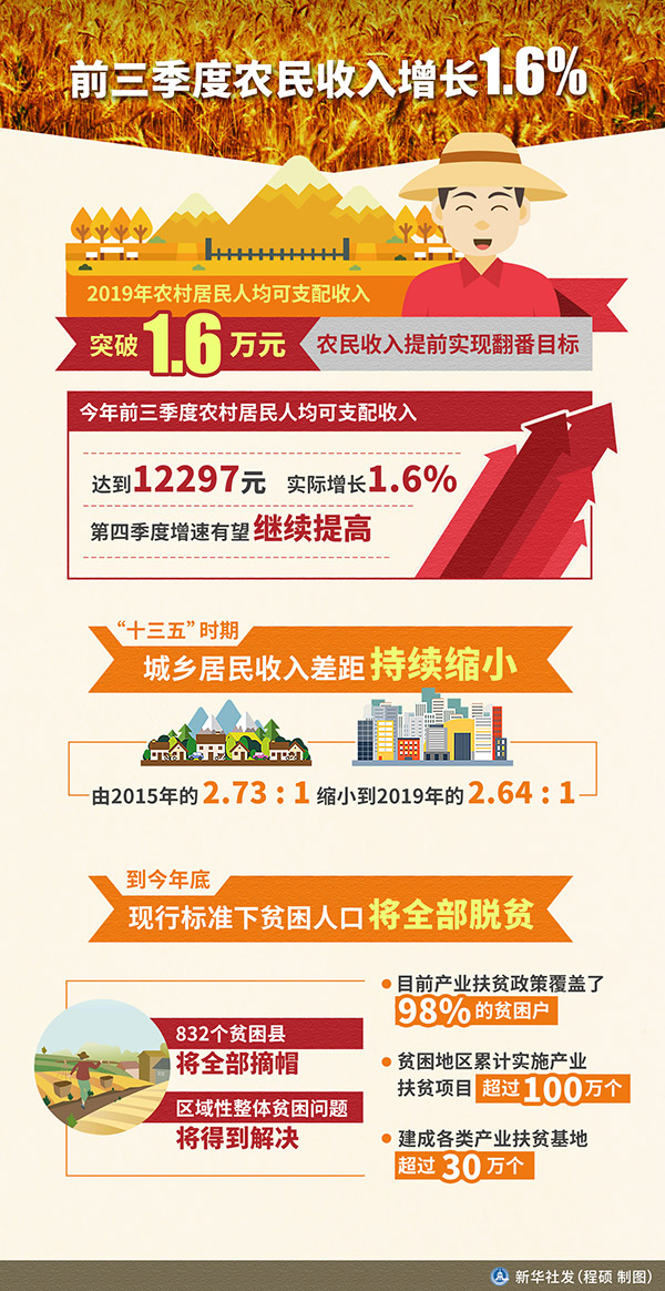 前三季度農民收入增長1.6%:小康之年農民將有更多獲得感