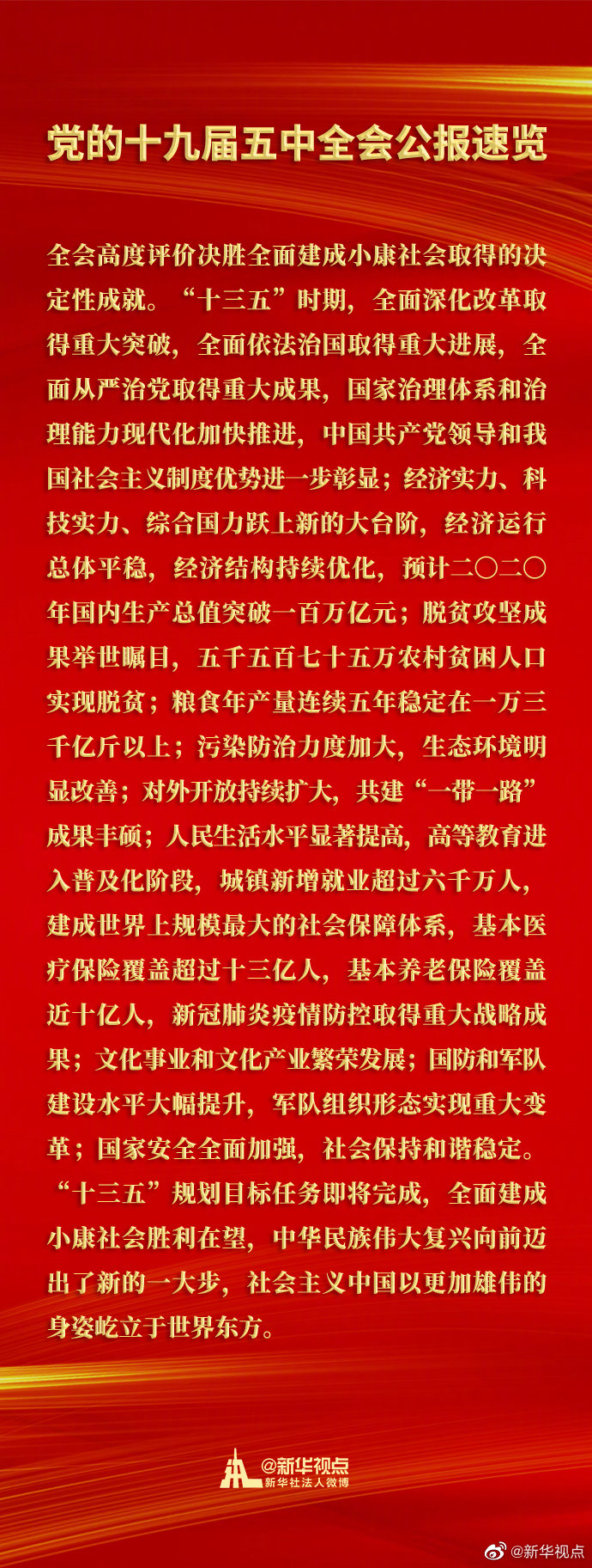 黨的十九屆五中全會公報速覽丨全會高度評價決勝全面建成小康社會取得的決定性成就-新華網