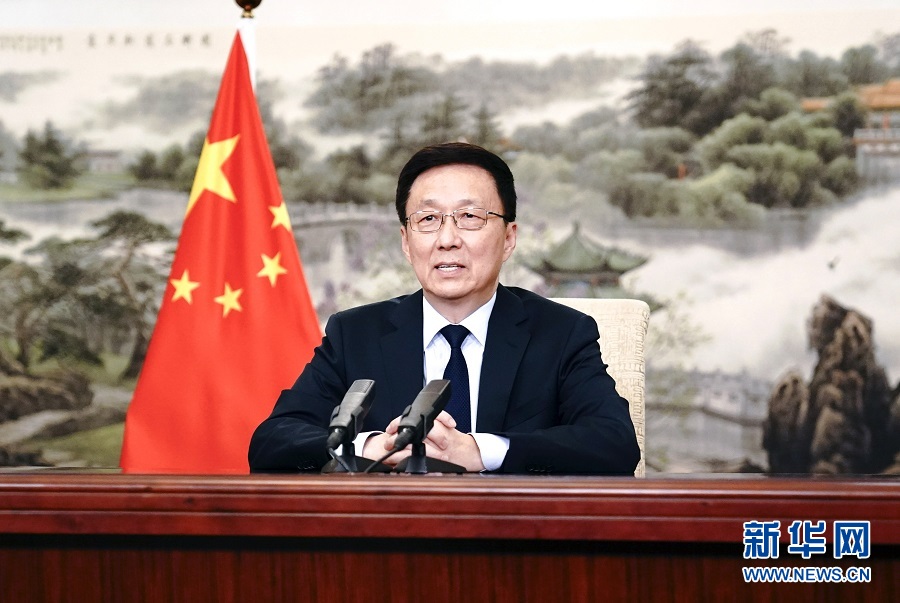 11月10日,博鰲亞洲論壇國(guó)際科技與創(chuàng)新論壇首屆大會(huì)開(kāi)幕式在澳門(mén)舉行。中共中央政治局常委、國(guó)務(wù)院副總理韓正以視頻方式發(fā)表主旨演講。 新華社記者 丁林 攝