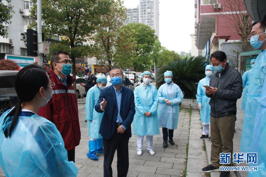 北京市豐臺(tái)區(qū)方莊社區(qū)衛(wèi)生服務(wù)中心主任吳浩(前左三)在武漢武昌區(qū)指導(dǎo)社區(qū)衛(wèi)生服務(wù)中心人員開展疫情防控(3月24日攝)。新華社發(fā)