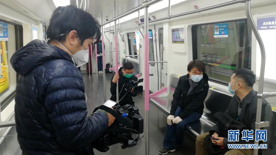 2020年3月,中央廣播電視總臺新聞中心記者董倩(右二)在武漢采訪報(bào)道地鐵重啟。新華社發(fā)