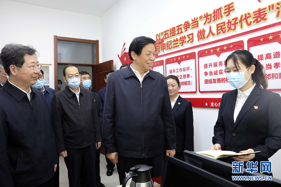 11月16日至18日,中共中央政治局常委、全國人大常委會委員長栗戰書在山西調研。這是11月17日,栗戰書在長治一處街道人大機關考察。新華社記者 劉衛兵 攝