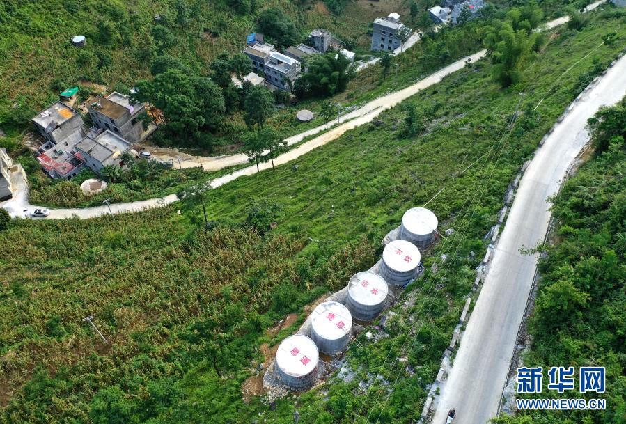 這是廣西都安瑤族自治縣永安鎮安蘭村新建的水柜(7月22日攝,無人機照片)。新華社記者 周華 攝