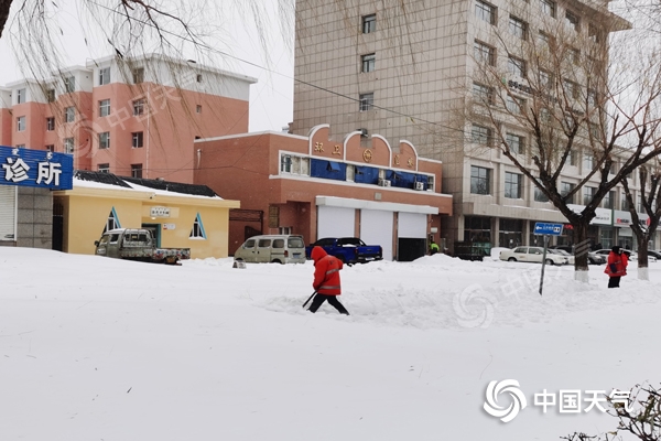 受強降雪影響,內蒙古通遼市市區積雪深厚。(圖/楊旋)