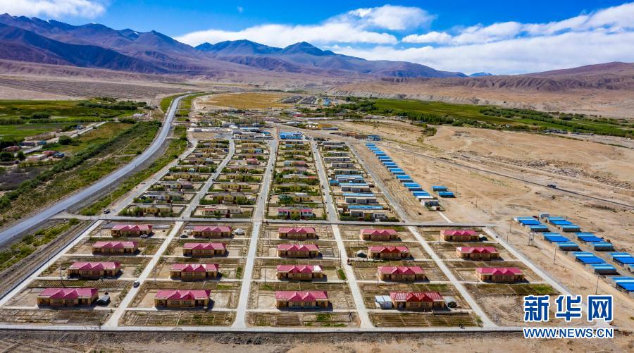 位于帕米爾高原上的新疆喀什地區塔什庫爾干塔吉克自治縣一處村莊新貌(6月10日攝,無人機照片)。新華社記者 胡虎虎 攝