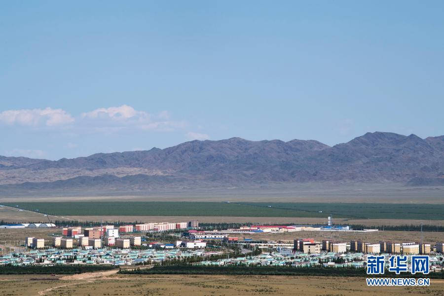 這是2019年8月9日拍攝的新疆阿勒泰地區青河縣易地扶貧搬遷安置點阿格達拉鎮。新華社記者 沙達提 攝