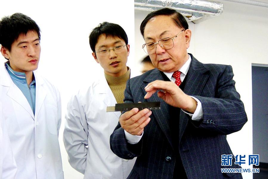 中國工程院院士、哈爾濱工業大學教授杜善義(右)為學生講解復合材料(資料照片)。新華社發
