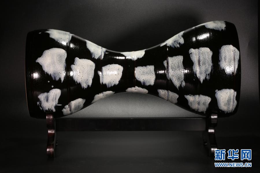 這是魯山窯花瓷腰鼓復(fù)仿制品(資料照片)。新華社發(fā)