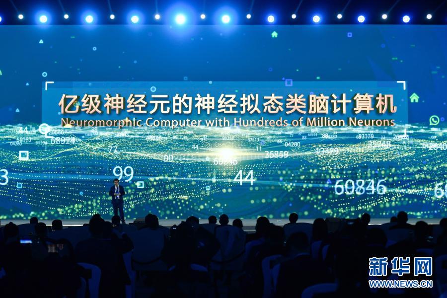 浙江大學、之江實驗室代表在“世界互聯網領先科技成果發布”活動上介紹“億級神經元的神經擬態類腦計算機”(11月23日攝)。新華社記者 黃宗治 攝