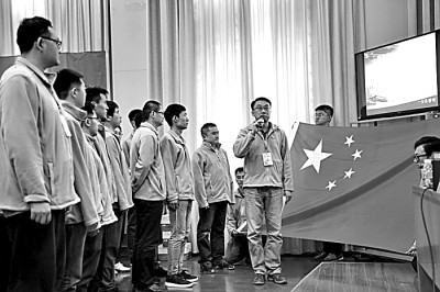 嫦娥四號探測器試驗隊成員在動員會上宣誓。資料圖片
