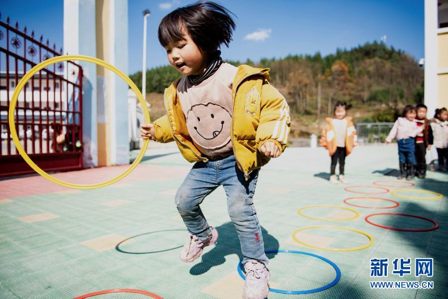 云南省鎮雄縣以古鎮巖洞腳村幼兒園的孩子在操場上玩耍(11月11日攝)。新華社記者 王冠森 攝