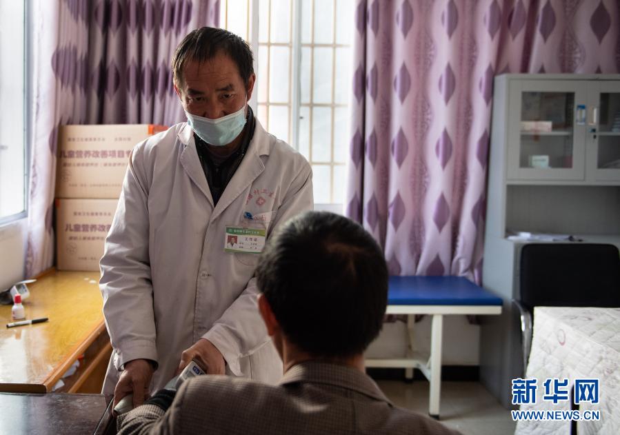 云南省鎮雄縣場壩鎮巴溜村衛生室醫生在為村民檢查血壓(11月14日攝)。新華社記者 王冠森 攝