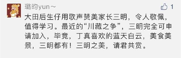 MV時(shí)長3分鐘多,有網(wǎng)友表示不過癮,也有網(wǎng)友對(duì)自己的家鄉(xiāng)沒有在MV中亮相感到有些遺憾,希望MV可以再長點(diǎn),“建議把三明各個(gè)縣的美景都放進(jìn)去”。(現(xiàn)代快報(bào) +/ZAKER 南京記者 徐紅艷 張瑜 常毅 鹿偉)