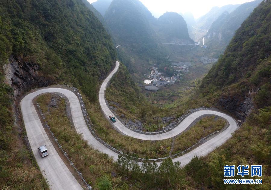 廣西百色市凌云縣泗城鎮(zhèn)隴雅村境內(nèi)的道路(2017年3月12日攝,無人機照片)。新華社記者 陸波岸 攝