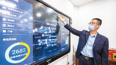 今年以來,上海市靜安區芷江西路街道對轄區內的老舊小區非機動車車庫(棚)進行智能化改造,利用物聯網技術將車輛相關信息傳遞到小區物業公司管理平臺。圖為工作人員介紹非機動車庫管理系統。王 翔攝(新華社發)