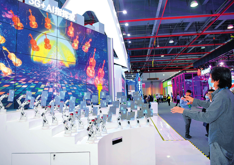 11月26日,工作人員在2020世界5G大會上調試5G體驗設施 鄧華攝 / 本刊