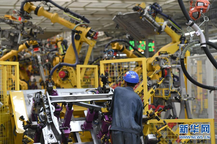 9月15日,在上汽集團(tuán)乘用車寧德基地車身車間,工人操作機(jī)器人分拼汽車板材。新華社記者 宋為偉 攝